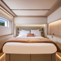 The Lagoon 60 not only offers you impressive spaces but also promotes sociability on board. The salon, versatile and spacious, adapts to all your desires. Whether you choose a kitchen or bar version, you'll benefit from an abundance of natural light thanks to its large vertical windows. It's the ideal place to prepare gourmet meals or enjoy a cocktail while taking in the breathtaking view.
