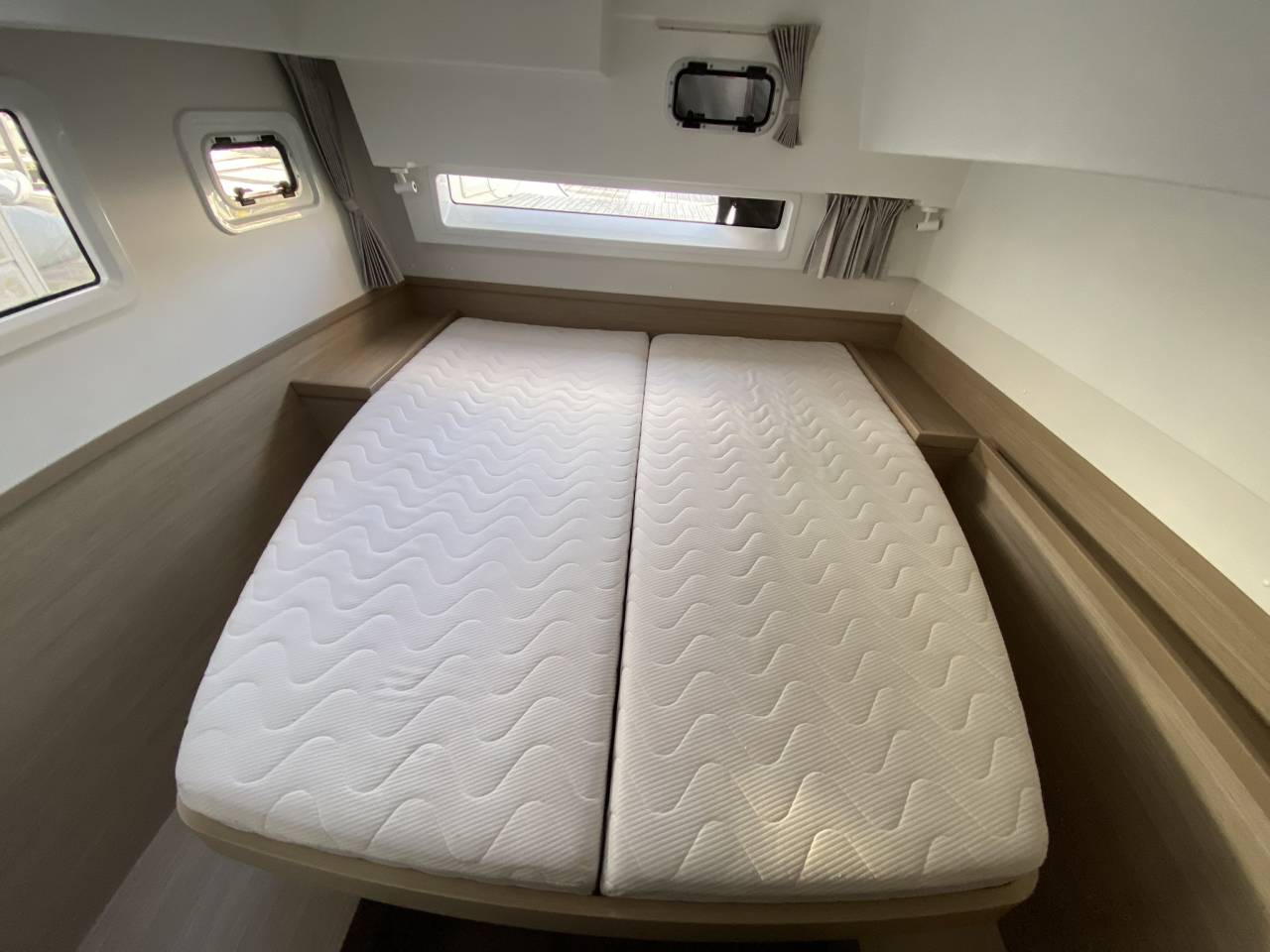 L'accès à l'eau est facilité grâce aux larges trampolines à l'avant du catamaran. Vous pourrez vous prélasser sur ces filets suspendus au-dessus de l'eau, profiter d'une baignade rafraîchissante ou vous lancer dans des activités nautiques excitantes. Que ce soit pour faire de la plongée en apnée, du kayak ou simplement se rafraîchir dans les eaux cristallines, les possibilités sont infinies.